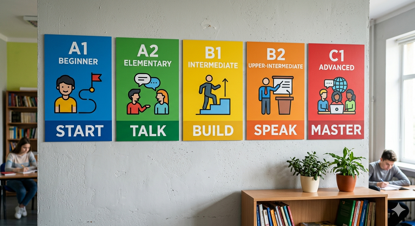 Von A1 bis B2 — Dein Weg zum fließenden Deutsch
